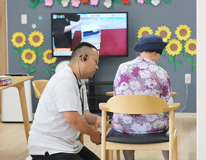 脳科学に基づいたプログラムで、楽しく自然に “考える・動く” を引き出し、心と身体の 活性化をめざします。畑作業や調理、駄菓子屋での販売など、日常の中に役割や社会とのつながりを取り入れ ることで、認知症の方も自信と笑顔を取り戻しています。「できること」だけでなく、「誰かのためにできること」を感じられる時間を、Blanc で。