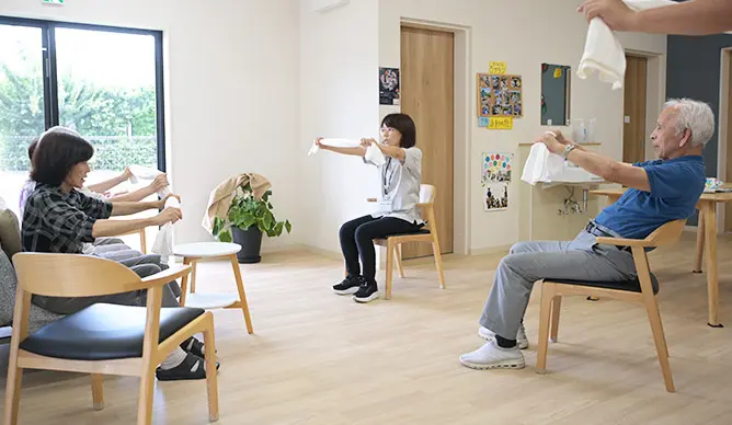 脳活デイサービス Blanc は、「リハビリ・ケア・共生」を組み合わせた新しいカタチの デイサービスです。